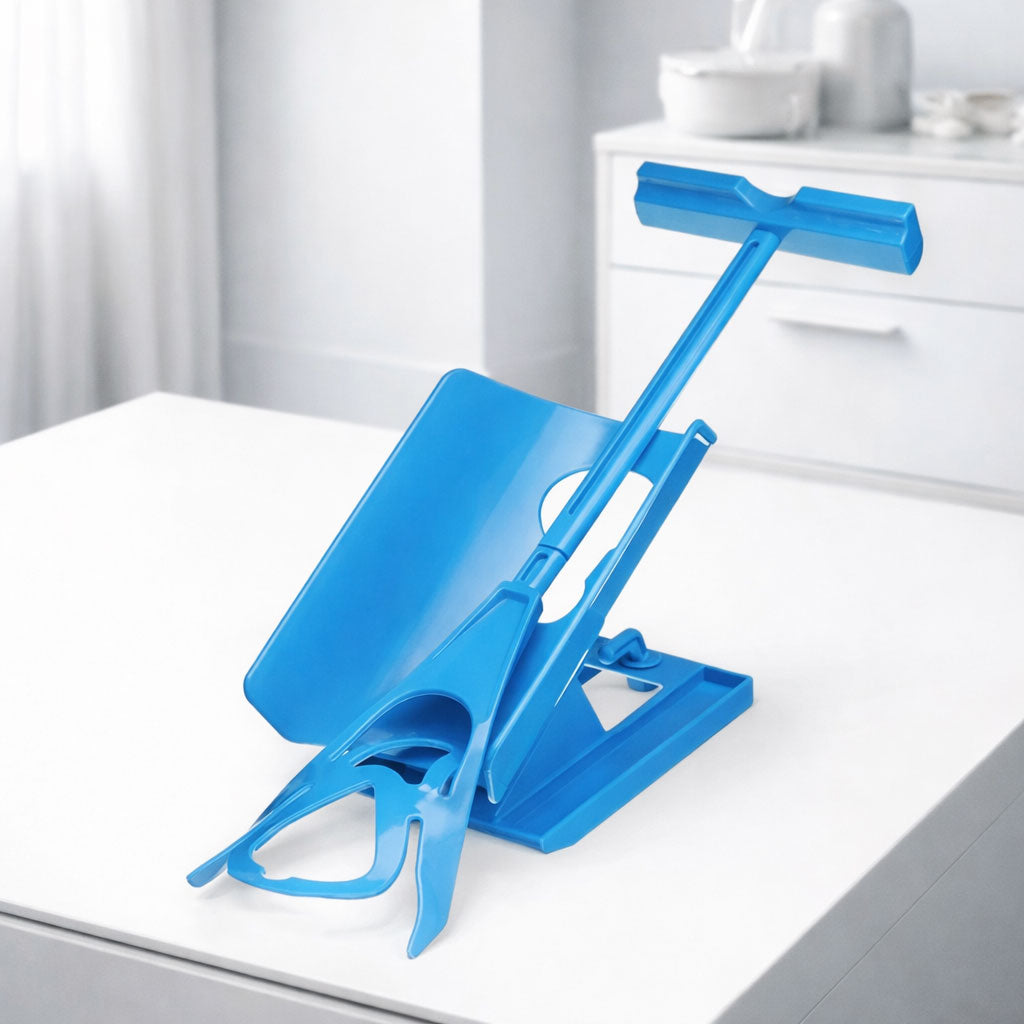 Cet enfile-chaussettes à structure ergonomique est conçu pour faciliter la mise en place des chaussettes de manière simple et fluide. Grâce à son design en berceau, il maintient la chaussette ouverte et stable, prête à être enfilée, sans manipulation complexe. Son format permet une utilisation pratique au quotidien, à la maison.