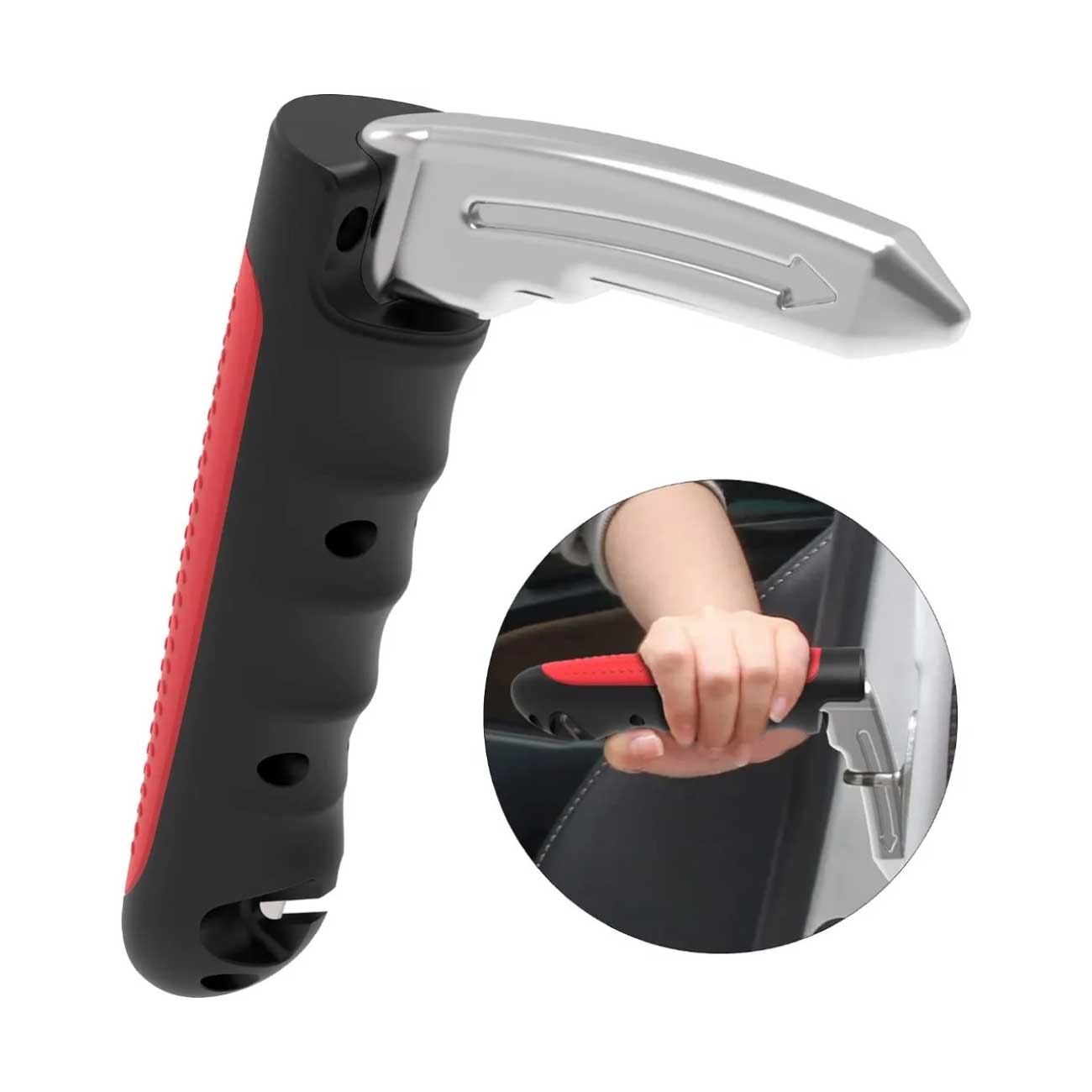 Véritable outil de sécurité 3-en-1, elle facilite avant tout le fait de se relever et de s’asseoir sans forcer, même en cas de fatigue ou de perte d’équilibre, avec un brise-vitre et un coupe-ceinture intégrés pour les situations d’urgence.
