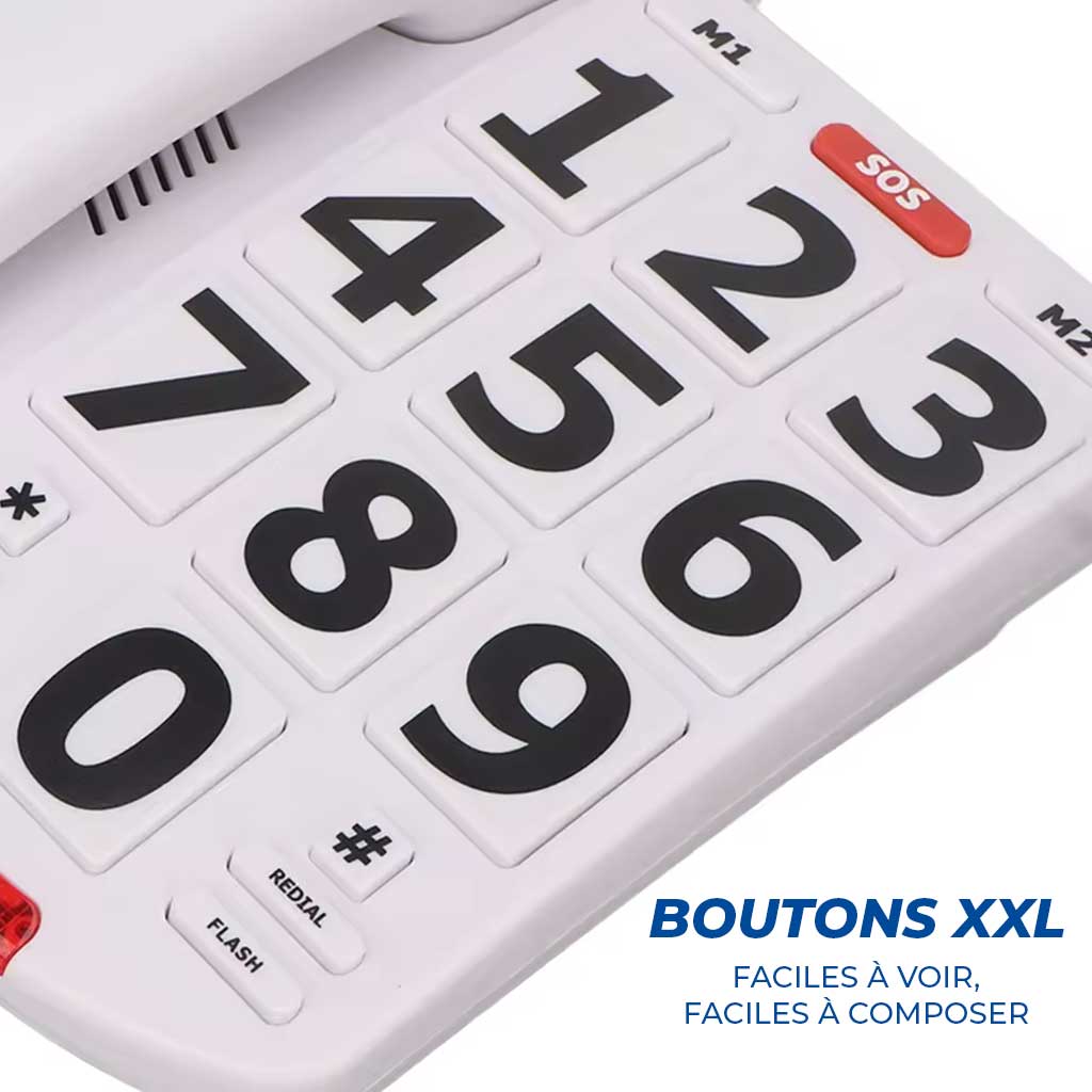 Contrairement aux téléphones classiques, ce téléphone a été conçu exclusivement pour les seniors. Aucune fonction inutile. Juste l'essentiel : appeler, décrocher, raccrocher. Installation en 2 minutes. Connexion filaire ultra-stable. Pas de batterie à charger.
